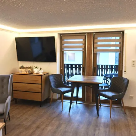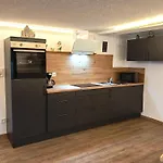 A kitchen is equipped with an oven and a dishwasher. The nearest bus stop to the apartment is Ortsmitte, which is 350 metres away.